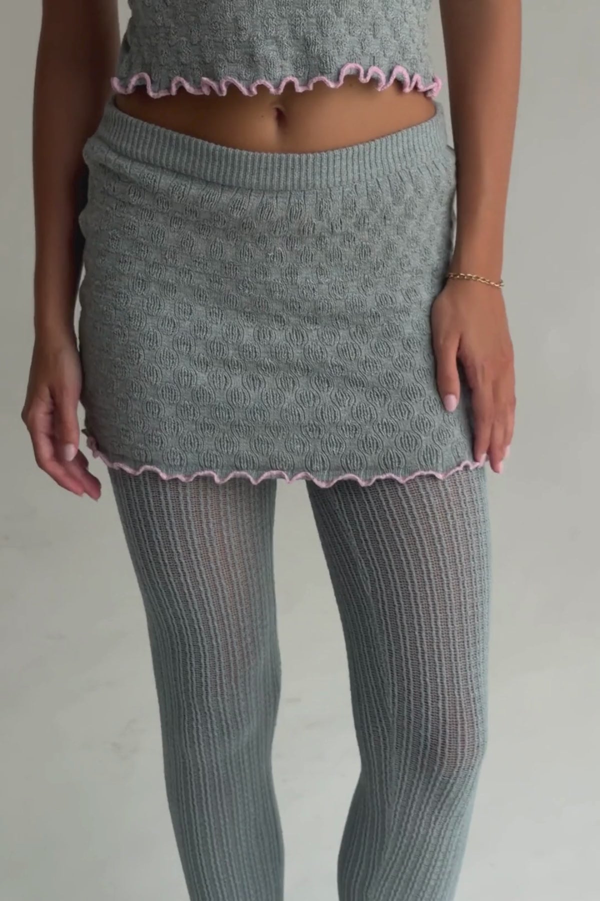 A refined rib knit legging designed to contour the body and elongate the legs. The lightweight open knit texture creates a subtle semi sheer effect while the soft stretch knit hugs the body with a comfortable second skin feel. A highly stylish layering piece that instantly elevates a look. Worn under mini dresses, skirts, or shorts, Ivy Knit Leggings add depth and sophistication.