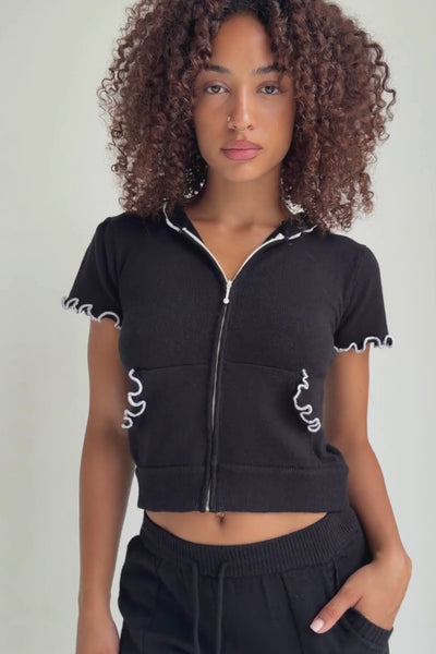 - Short sleeves with delicate ruffled edges